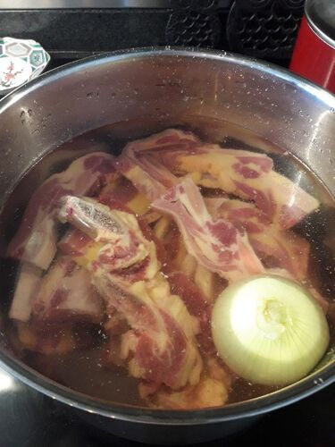 今日は朝からウキウキ。 何故なら、 長男が帰国する日!! ということで、 JAYA GROCERに行き、 冷凍骨付きカルビ、1.5キロ購入。 インドネシアへ奉仕旅行に行っていた長男への滋養食だと、オットが仕込む。2時間ほど骨付きカルビの血ぬきをし、 肉:水=1:3で…