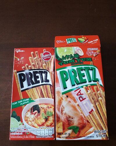 今日の3時のおやつは、 タイのお土産、トムヤンクンプリッツと スーパーで買ってきた、海外向けトムヤンクンプリッツ。 ちなみに両方ともタイ製。さて、 同時に食べてみよう~。食感が、、 タイで買ってきたプリッツの方が、軽め?!サクっ。 シーズニング…